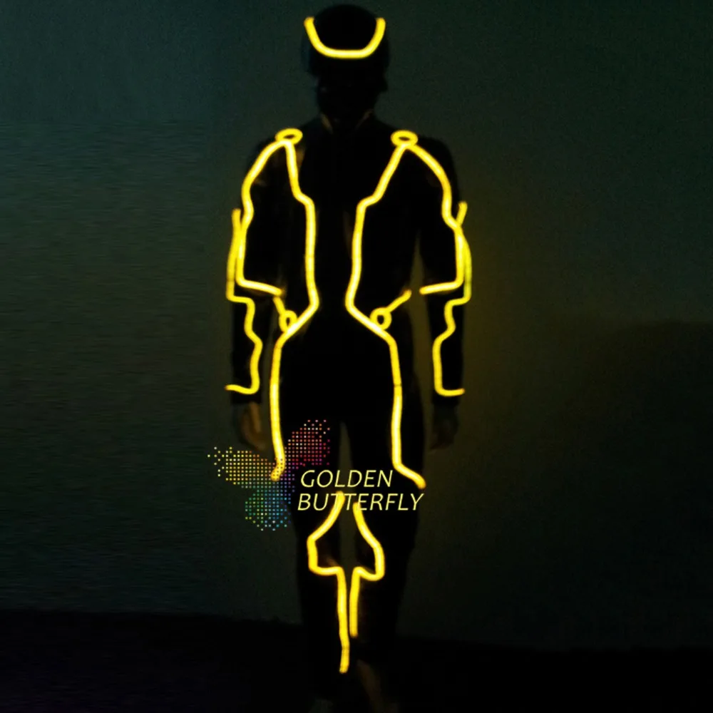 ^ Goedkoop EL Clothing Cold Light Glowing Dance LED Clothing EL Indian Luminous Costumes Scintillation Costume Men Cold Strip Party Lage kosten